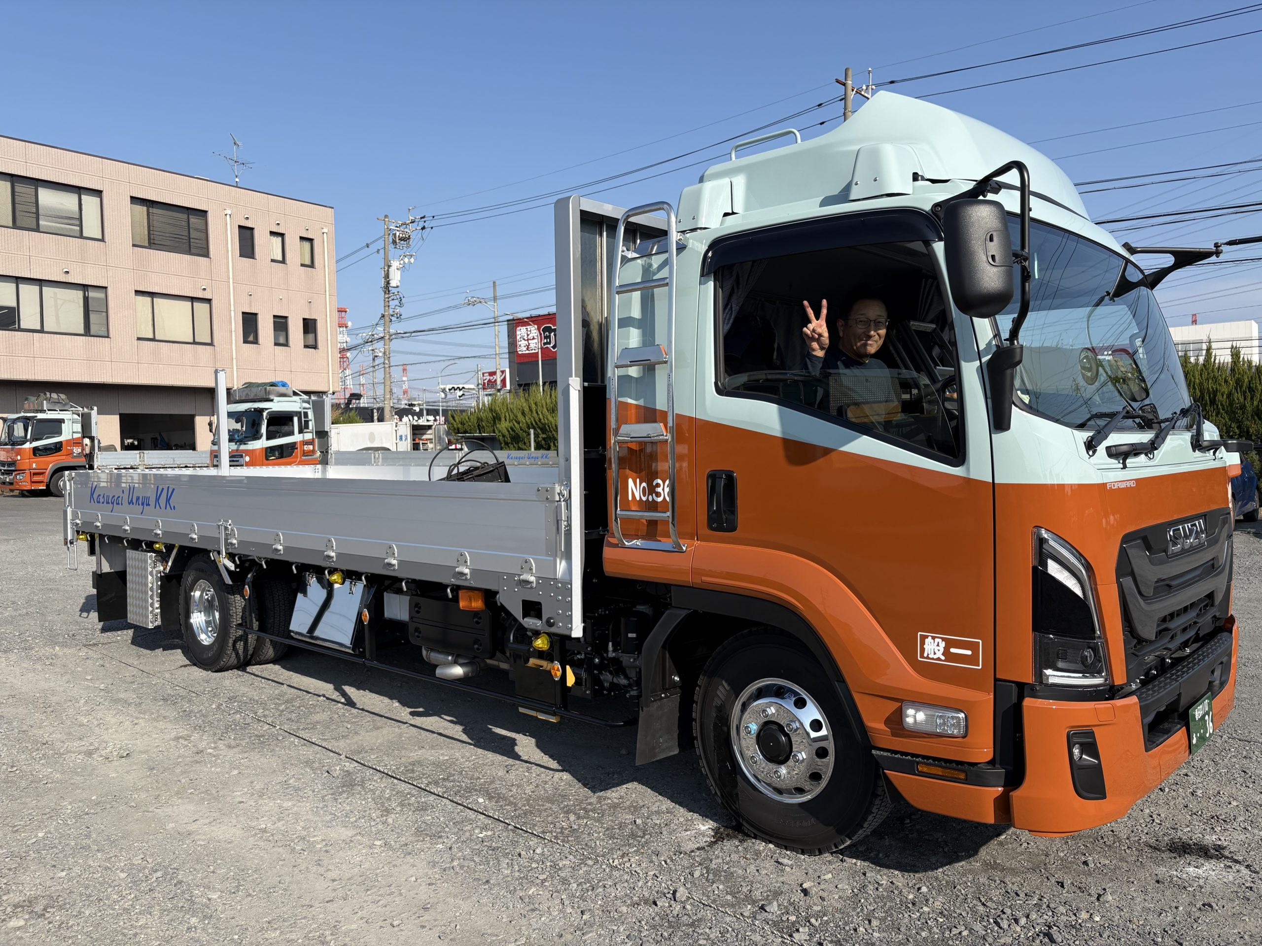 このたび、春日井運輸に新しい4t平車が納車されました。